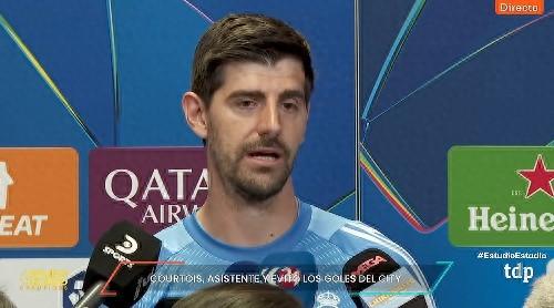 歐冠1/8決賽首回合,皇馬主場3-0戰勝曼城,賽後在混採區,有記者向庫爾圖瓦問及阿隆索。