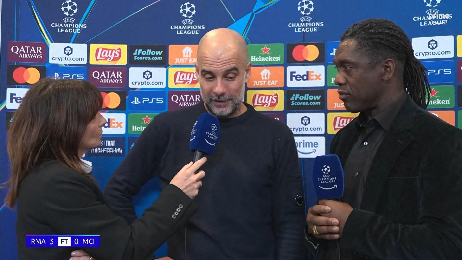 率隊在歐冠1/8決賽首回合客場0-3慘敗給皇家馬德里之後,曼城主教練瓜迪奧拉接受了來自意大利亞馬遜Prime Video的採訪。