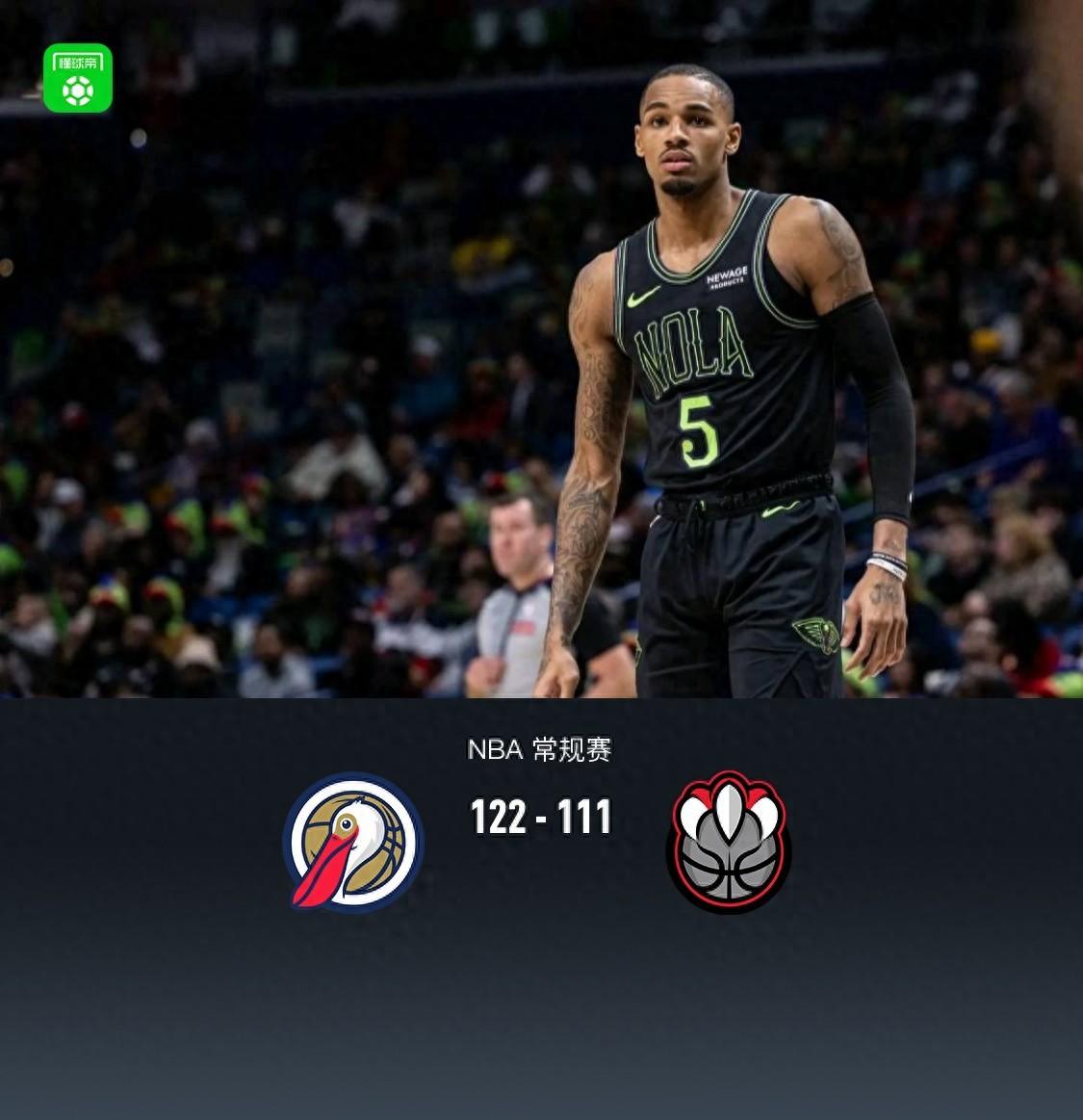 第四節鵜鶘德章泰-穆雷拿下7分,猛龍奎克利拿下9分,最終鵜鶘122-109戰勝猛龍