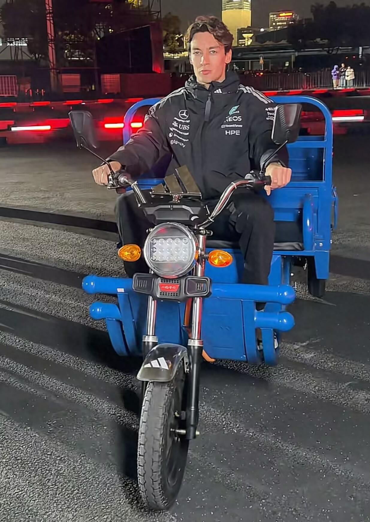 昨日,梅賽德斯車隊車手拉塞爾與冬奧會冠軍蘇翊鳴一同參加了商業活動,在官方發佈的小視頻中,拉塞爾也是體驗了三輪車的駕駛,他開着三輪車去接了蘇翊鳴。