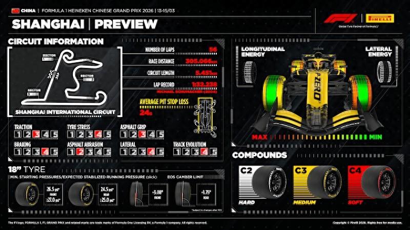 倍耐力F1中國站前瞻:本站使用C2-C4輪胎,去年黃白一停爲主