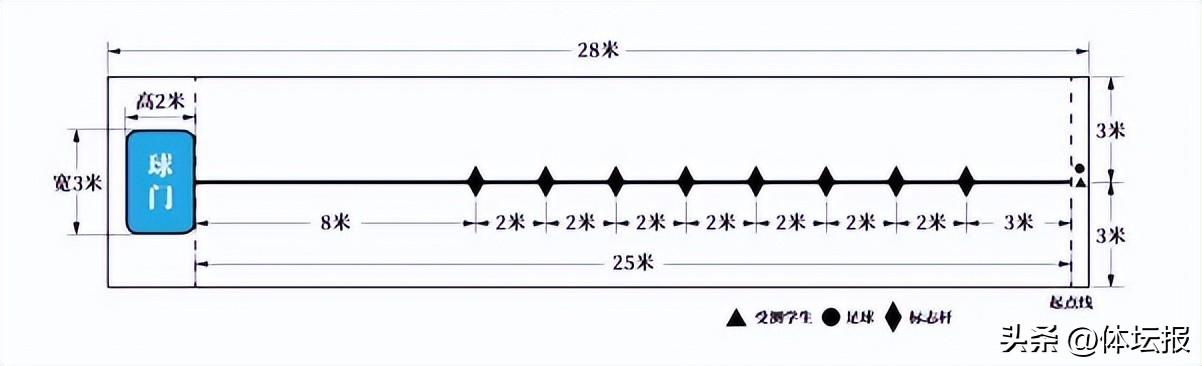 根據體育中考規則,足球項目的測試辦法與杭州市中小學生體能素質檢測的足球繞杆射門一致。考生須先完成運球繞杆,再完成射門,當球的整體越過球門線時停表,以時間記錄成績;時間以秒爲單位,精確到小數點後1位(0.1秒),四捨五入。男生滿分11.5秒,女生滿分13.6秒。每次考試,考生有兩次機會,取最好一次成績。