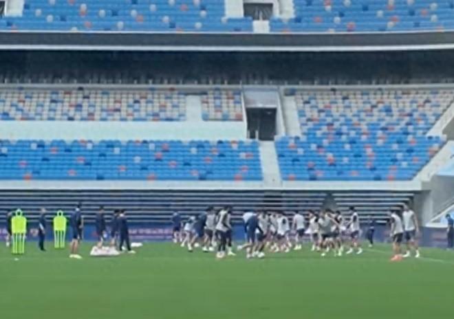 據報道,在賽前新聞發佈會結束後,新鵬城全隊在球場進行了一個小時的踩場訓練。外援阿代米缺席。