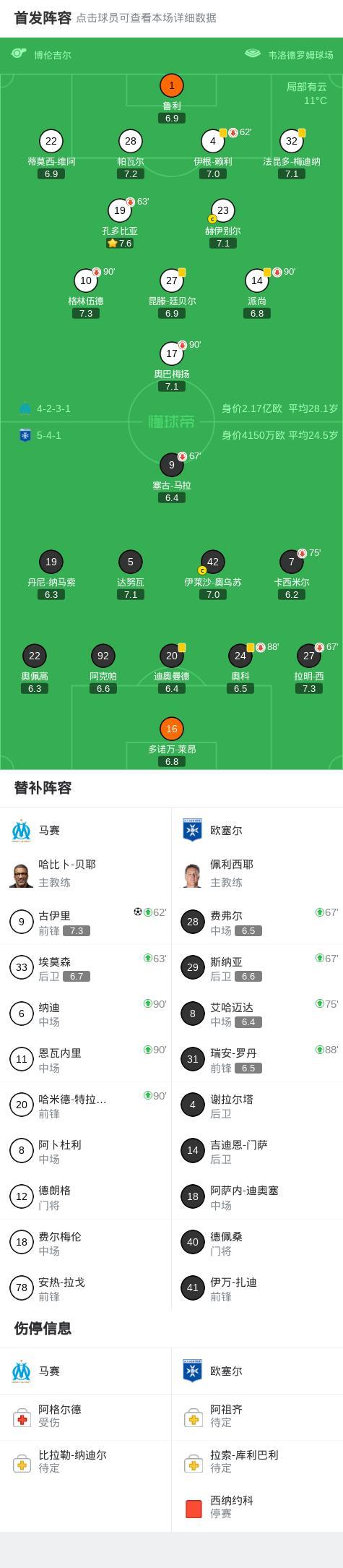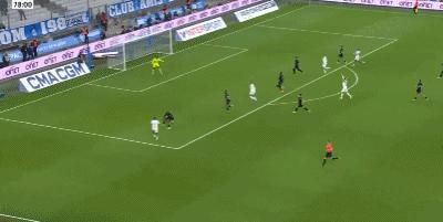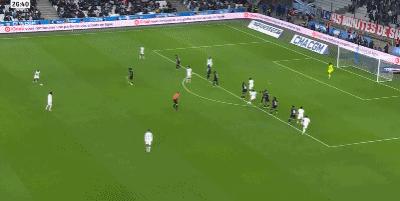 第79分鐘,古伊裏禁區得球抽射破門,馬賽1-0歐塞爾