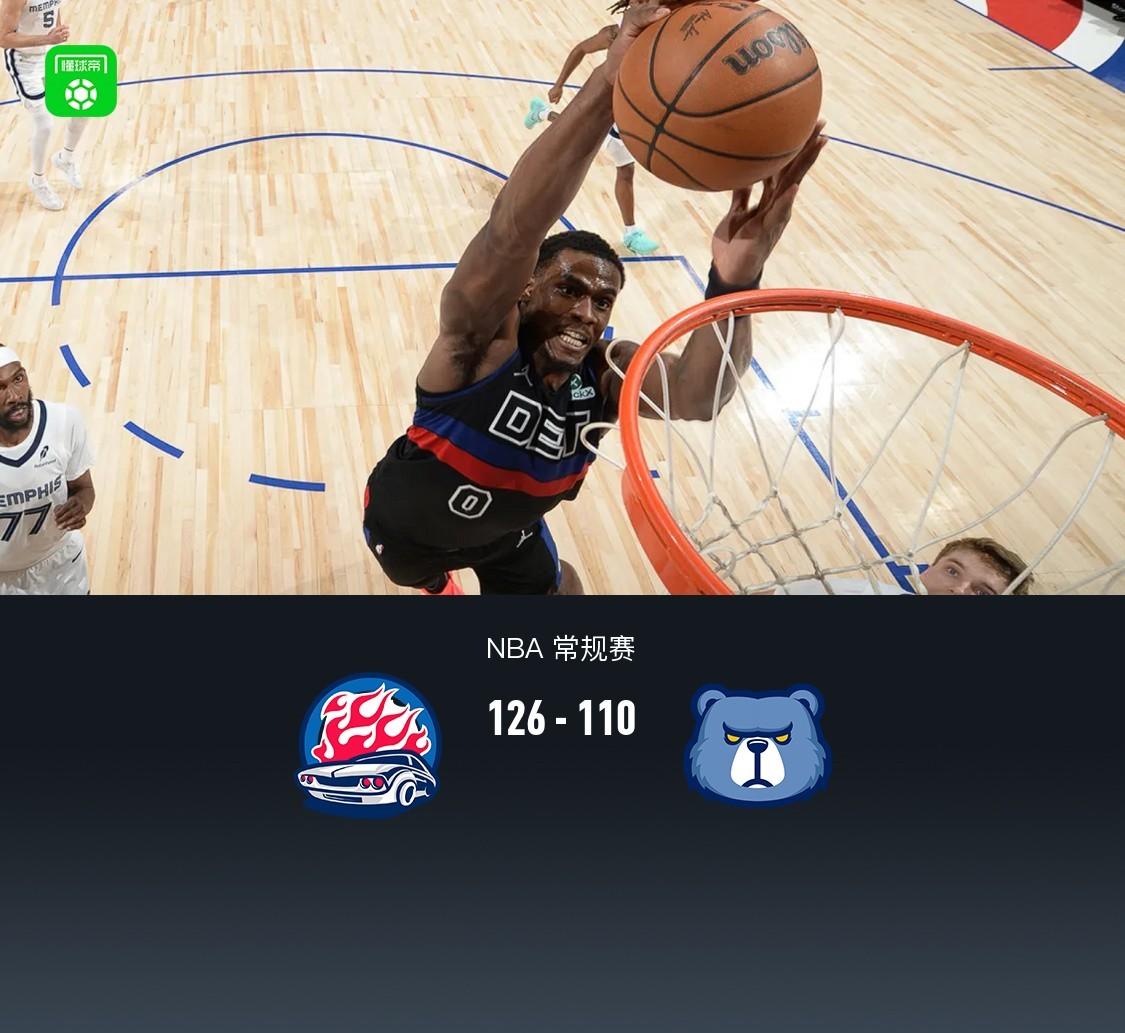 第四節活塞勒維爾拿下4分,灰熊賈文-斯莫爾拿下9分,最終活塞126-110戰勝灰熊