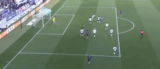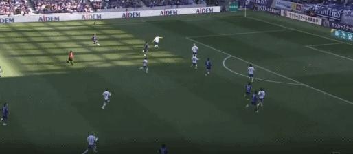 第41分鐘,新井直人重炮攻門,東口順昭將球撲進球門,廣島三箭1-0