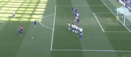 第25分鐘,新井直人任意球攻門,球打在邊網上