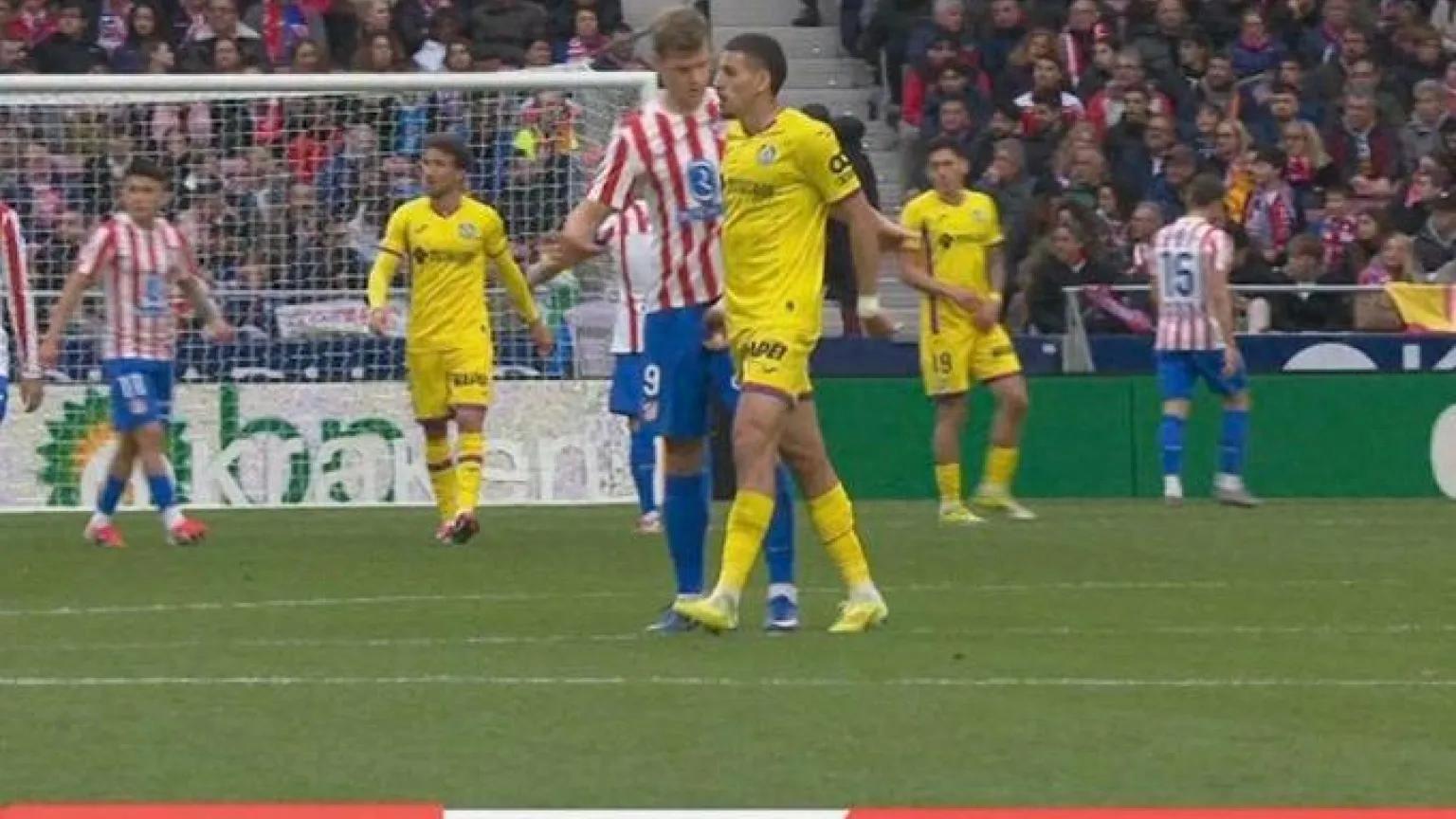 比賽進行到第55分鐘,主裁判奧爾蒂斯-阿里亞斯在VAR的提醒下,到場邊觀看回放。經過數分鐘暫停,錄像清晰顯示:瑟洛特與阿布卡爾發生衝突,赫塔費球員掐捏了挪威前鋒的私密部位,後者隨即抓住他的手臂,用力將他摔在地上。