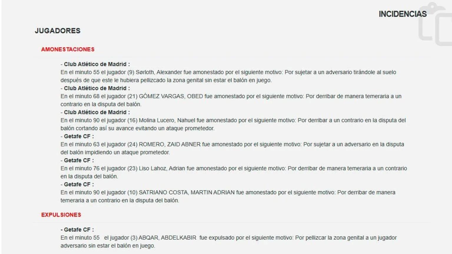 最終判罰:阿布卡爾直接紅牌罰下,瑟洛特黃牌警告,赫塔費球員對此表示強烈不滿。