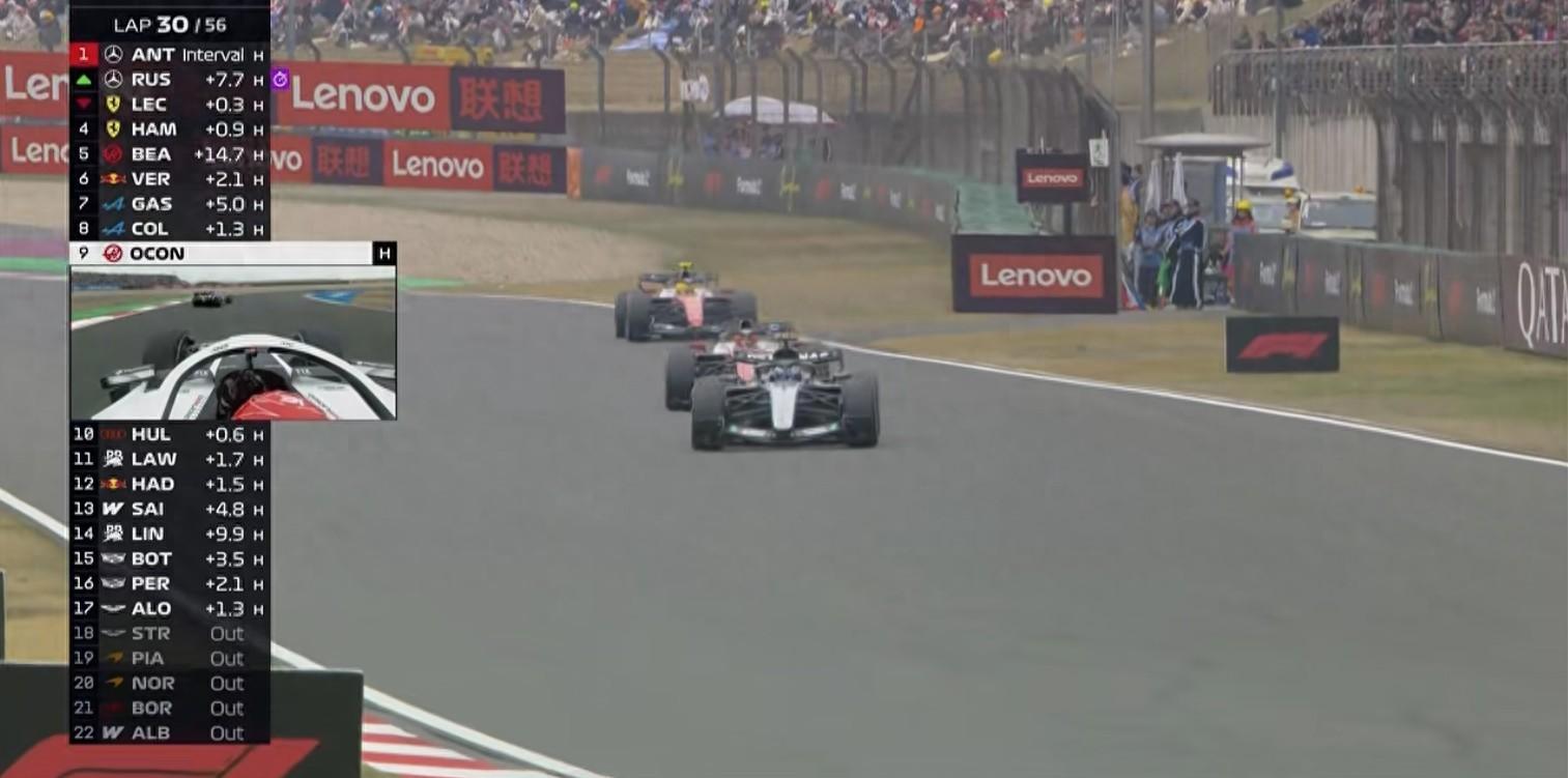 F1中國站正賽,法拉利兩位車手貢獻了一段精彩的纏鬥戰,勒克萊爾最終勝出。但身後的拉塞爾依靠這段纏鬥連續完成超車回到第二。安東內利也因此將與後車的差距拉開到8s左右。