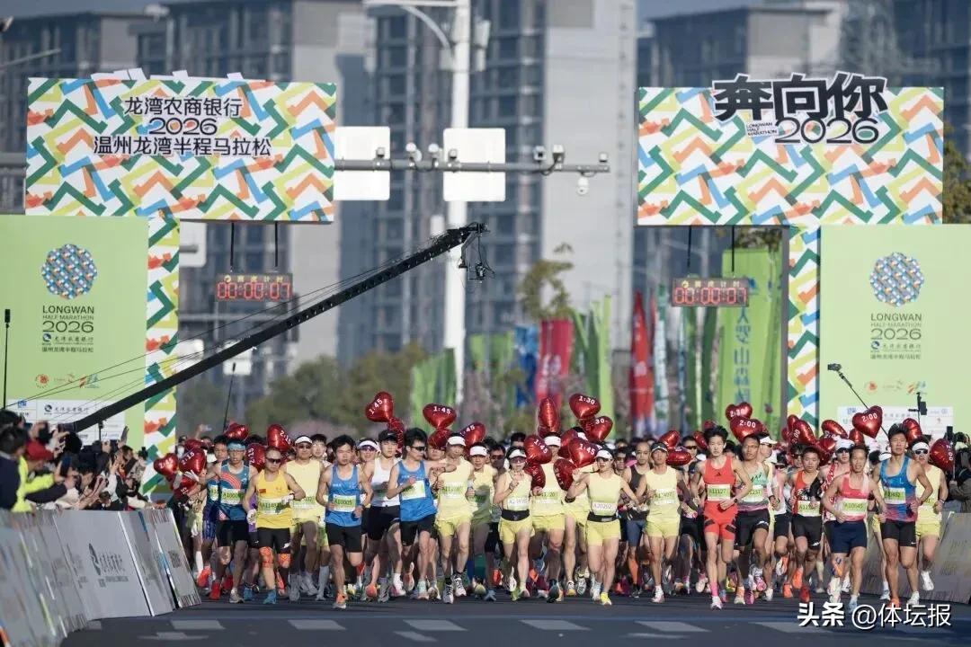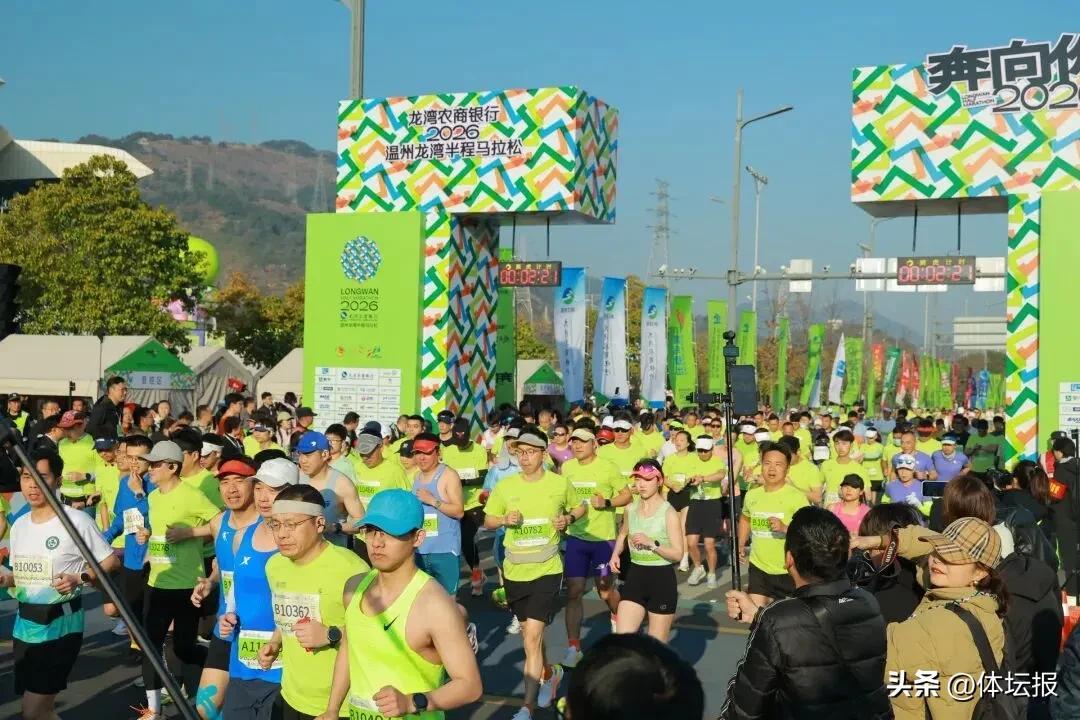 上午7點30分,2026溫州龍灣半程馬拉松(簡稱“龍馬”)在溫州奧體中心鳴槍開跑。伴隨着歡呼聲,8000名來自世界各地的跑者,如潮水般湧入賽道,現場洋溢着青春活力的氣息。