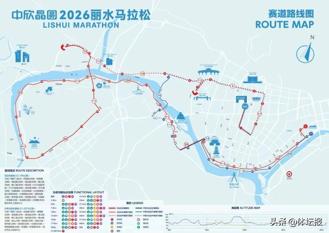 本次賽事對起終點及整體賽道路線進行了全方位優化調整,賽事起點統一設置於萬地廣場西門;馬拉松、半程馬拉松項目的終點實行分設規劃,完賽功能區則統一佈局在市水上運動中心。賽道途經應星樓、南明門、處州府城、南明湖等地標,深度串聯麗水甌江綠道等核心景觀帶,跑友在奔跑途中可沉浸式領略“山水城景相融”的城市風貌,感受麗水“中國生態第一市”的自然之美。