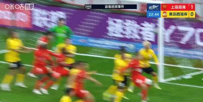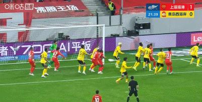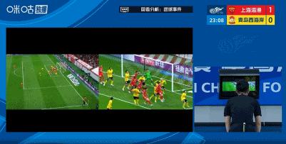 第21分鐘,海港角球中李昊受擠壓撲救不遠,萊昂納多抽射破門,經VAR確認進球被判無效!