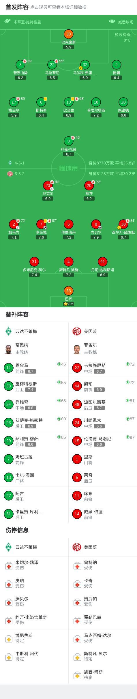北京時間3月15日德國足球頂級聯賽 聯賽 第26輪,雲達不萊梅主場對陣美因茨。美因茨內貝爾破門,李在城破門。最終比分雲達不萊梅 0-2 美因茨。