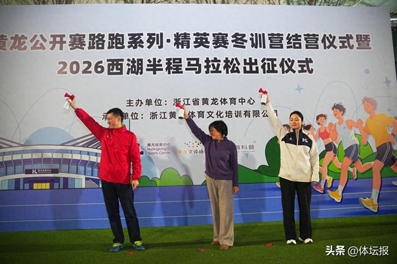 3月13日晚,黃龍公開賽路跑系列·精英賽冬訓營結營儀式暨2026西湖半程馬拉松出征儀式在杭州黃龍體育中心室外田徑場舉行。