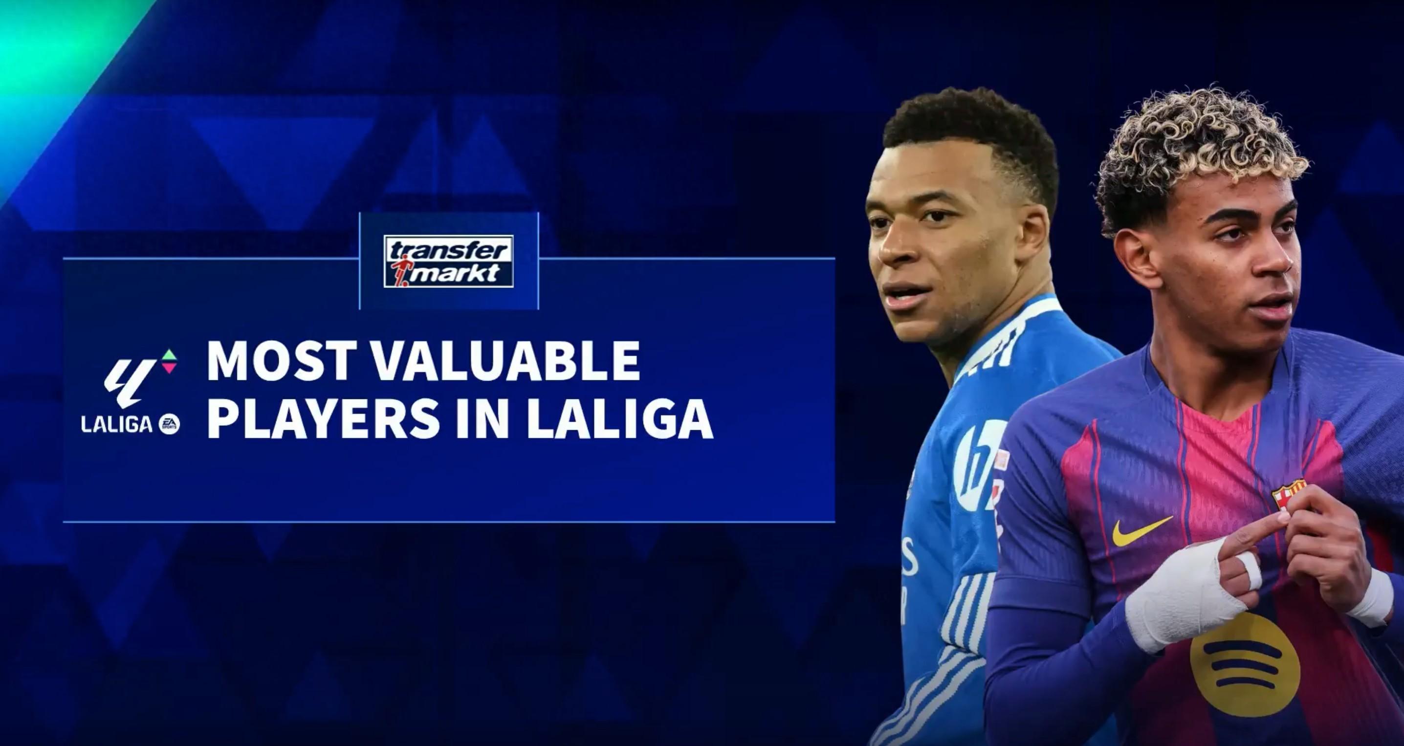 北京時間3月16日,德轉更新了西甲球員的身價,與此同時他們也列出了此次更新後西甲身價排名前10的球員,亞馬爾和姆巴佩同以2億歐元繼續並列第一。