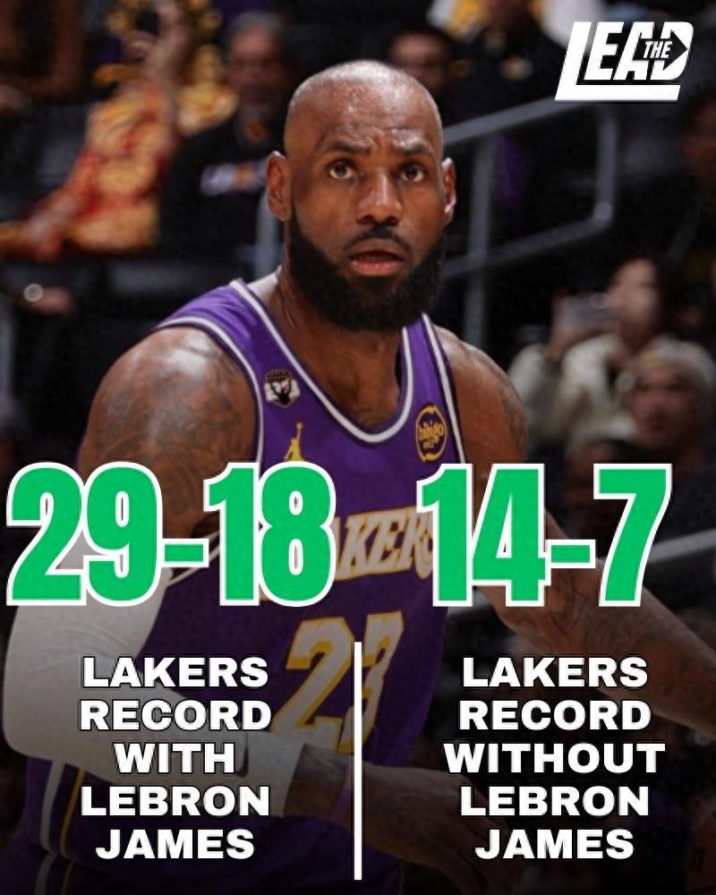 賽後根據統計,本賽季在詹姆斯出場的比賽中,湖人取得29勝18負的成績,勝率達到了62%,而在詹姆斯缺陣的比賽中,湖人的戰績爲14勝7負,勝率僅爲50%。