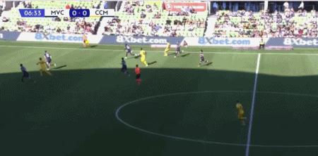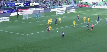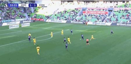 第50分鐘,米蘭達左路傳中,韋盧皮萊頭槌破門扳平比分,墨爾本勝利1-1