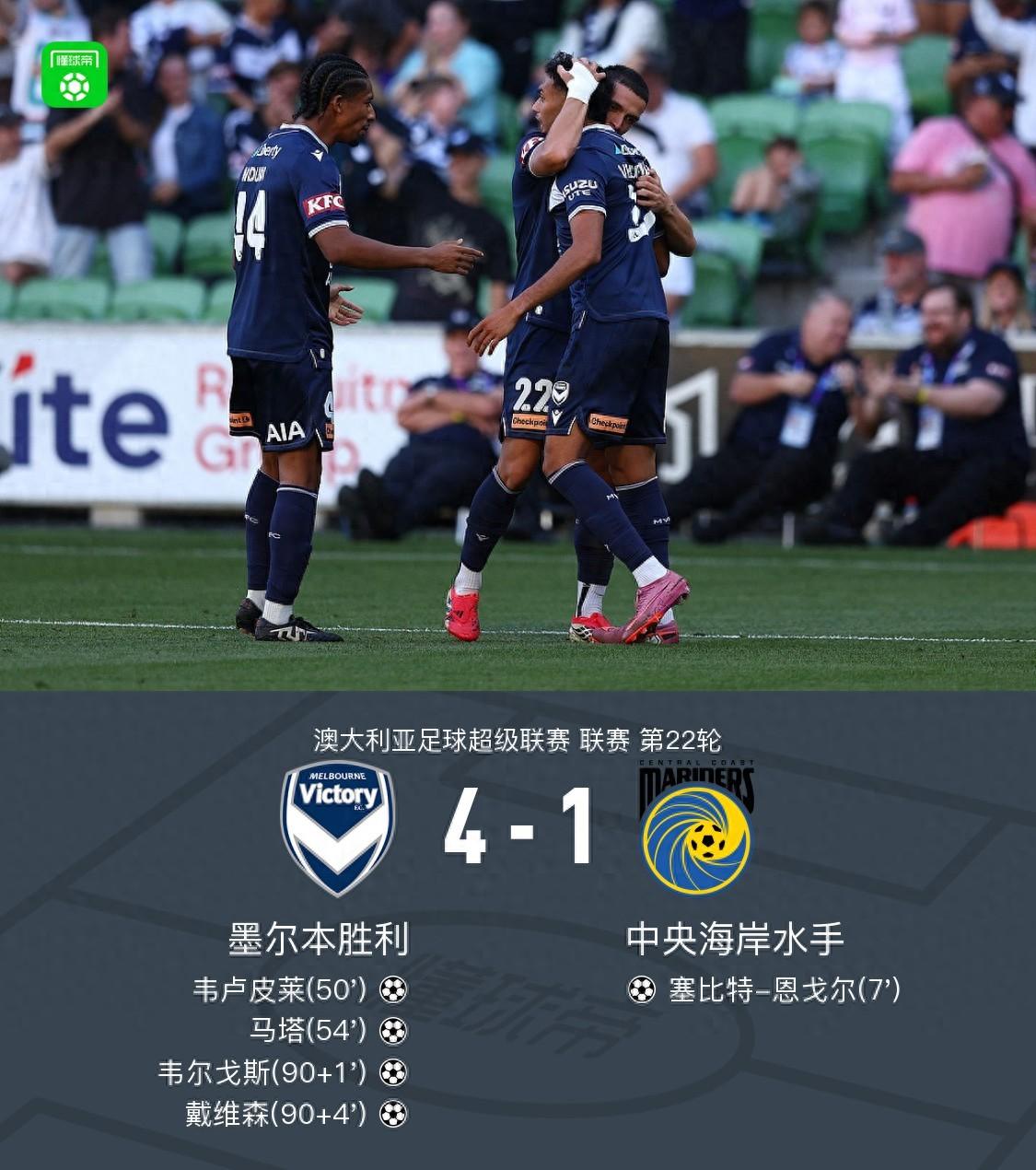 墨爾本勝利4-1逆轉中央海岸水手,馬塔傳射,韋盧皮萊建功