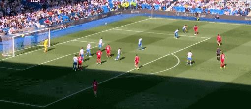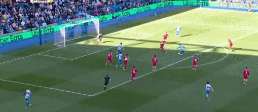 第21分鐘,麥卡利斯特頭球,球被費布魯亨撲出