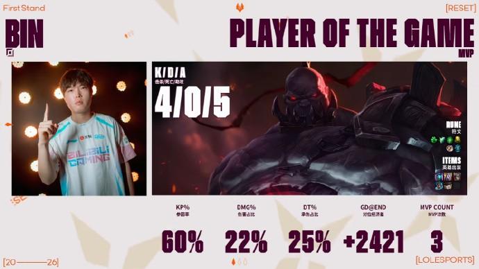 本局MVP給到“城牆”Bin!