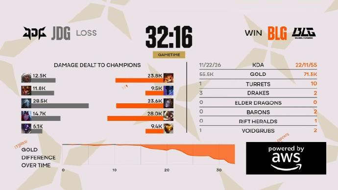 第36分鐘,BLG拿下土龍魂後團滅JDG一波結束比賽!