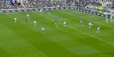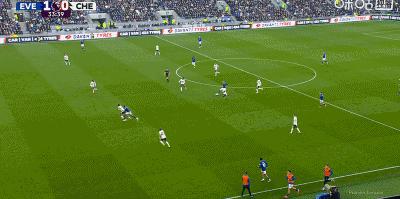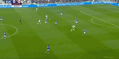 第34分鐘,加納直塞,貝託冷靜挑射破門,埃弗頓1-0切爾西