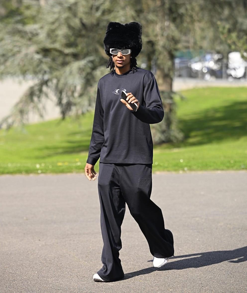 據瞭解,奧利塞身穿的這件黑色針織衫(售價330歐元)、配套的闊腿褲(約290歐元)以及運動鞋(逾300歐元)均來自法國品牌Maison Margiela。