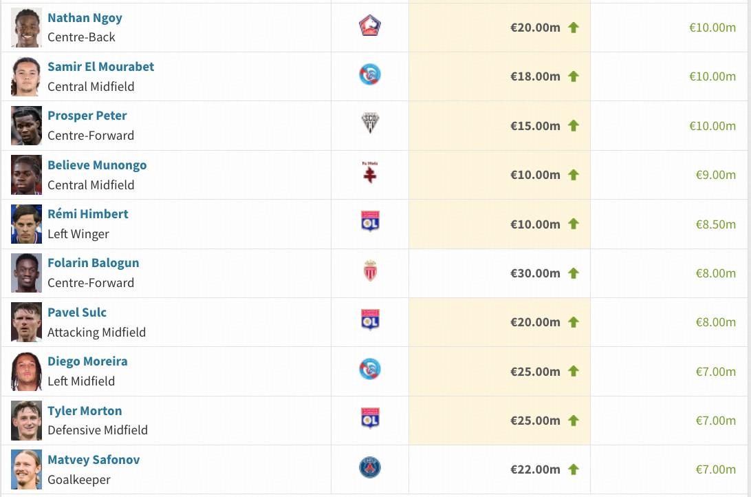 法甲球員身價TOP15