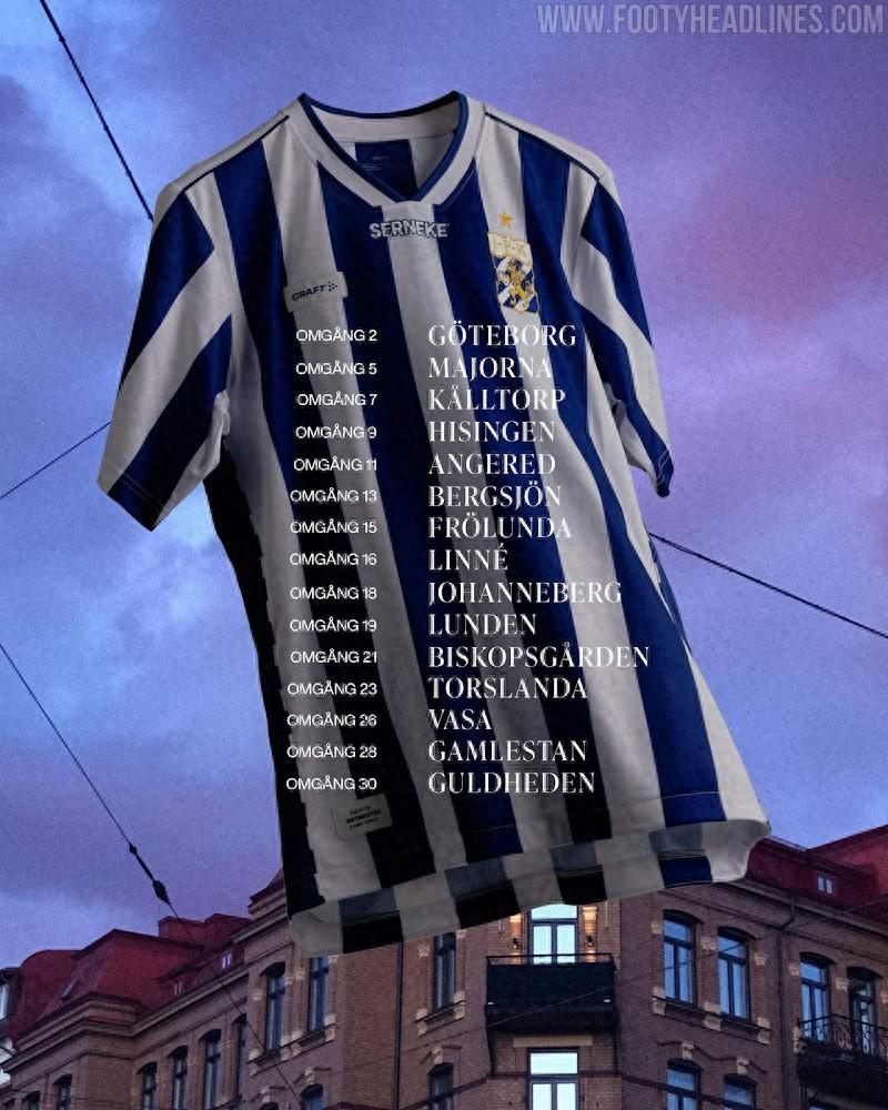 本賽季胸前的設計也引人注目——俱樂部主要合作伙伴Serneke放棄了胸前廣告位置,取而代之的是印有14個不同市區名稱以及城市名稱“Göteborg”的創意設計。球衣將在15場主場比賽中輪換展示這些街區名稱,確保哥德堡的各個區域都能在賽場上亮相。