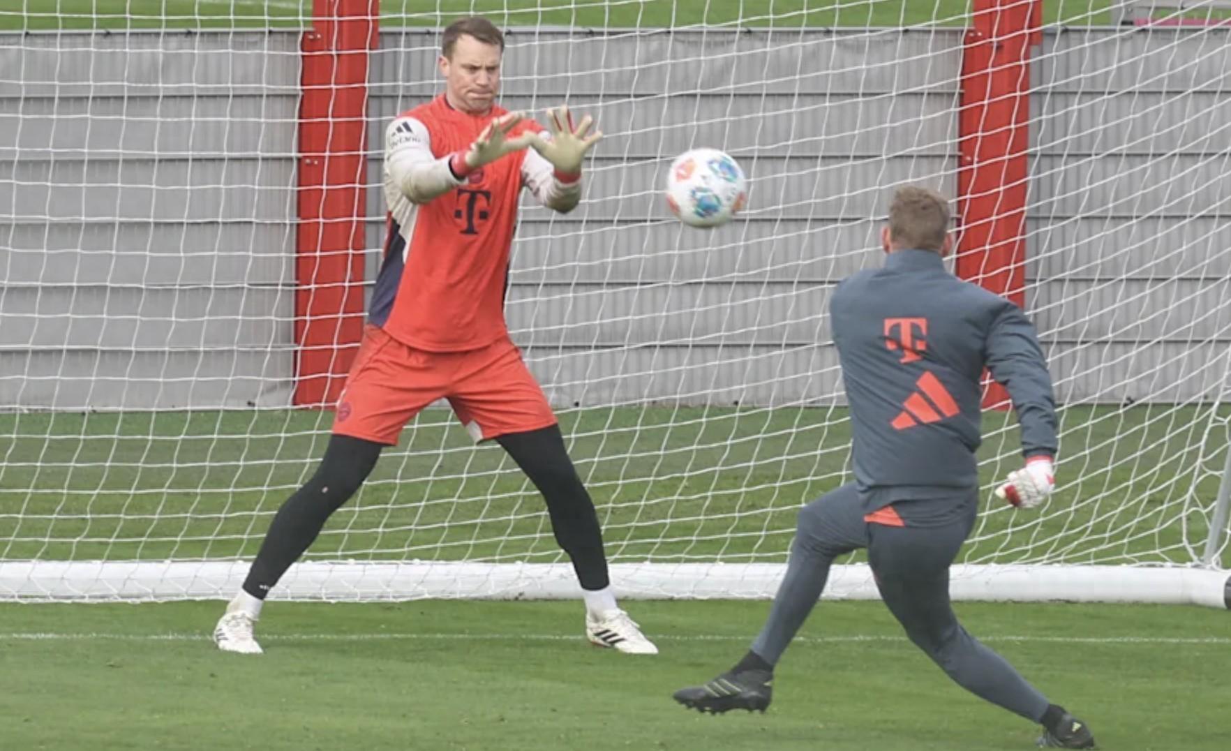 本週三,諾伊爾在塞貝納大街訓練基地進行了訓練。