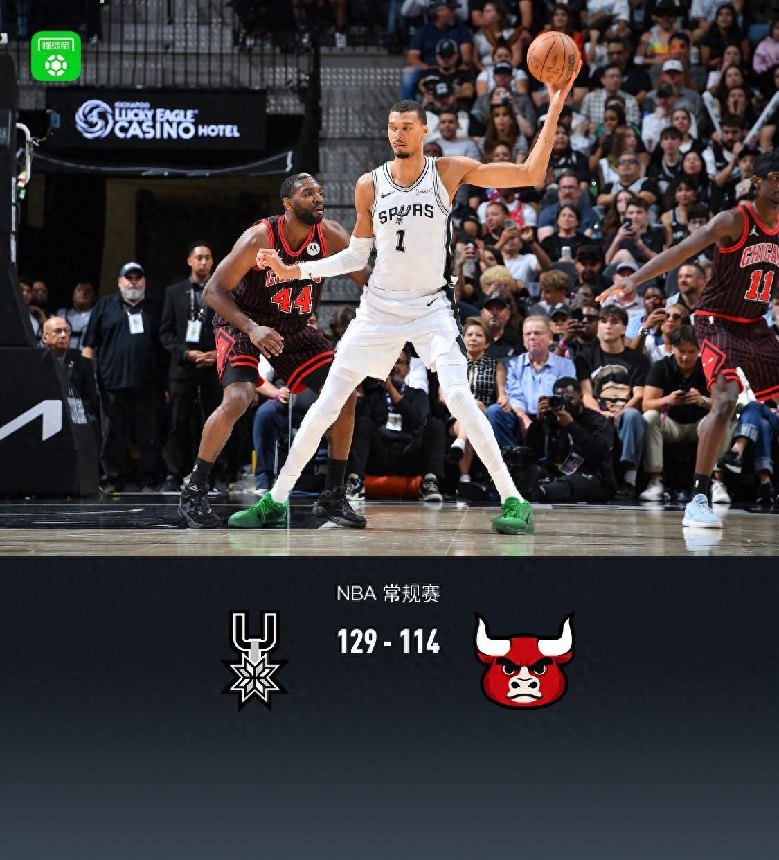 馬刺129-114公牛豪取9連勝,文班亞馬41+16,卡斯爾21+8+10