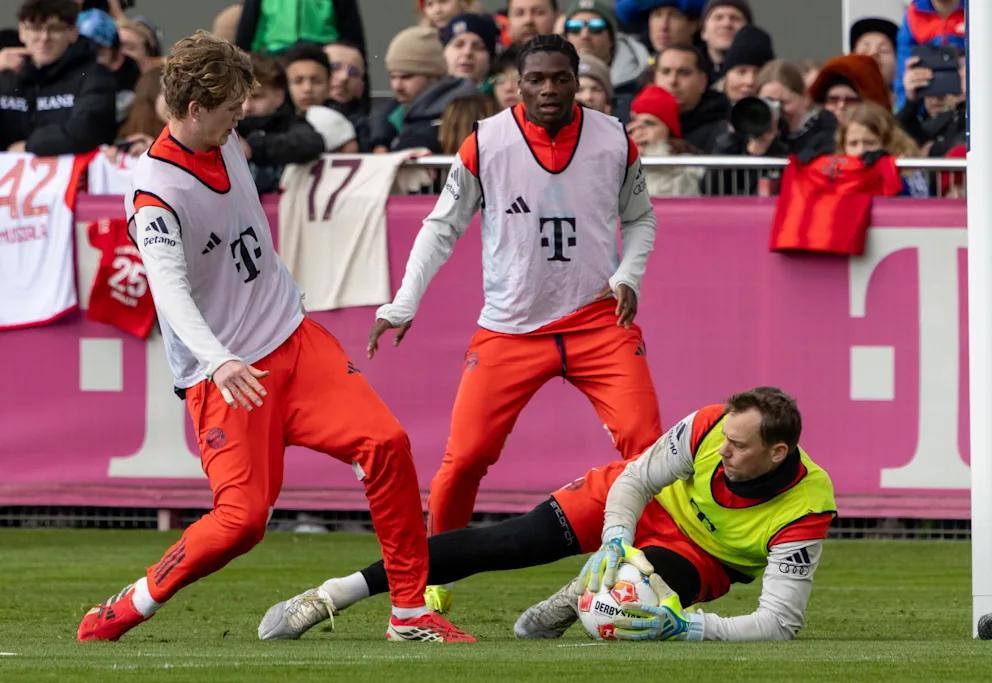 報道稱,奧斯馬尼已經跟隨孔帕尼訓練了數週,其餘4人則是在本週一首次進入一線隊訓練。幾名小將的表現都相當積極。馮-陶貝在前場取得進球,施密德也在諾伊爾所在一方的對抗賽中破門,馬斯平比在防守端表現穩健,努拉伊和奧斯馬尼則在場上爲每一個球全力拼搶。