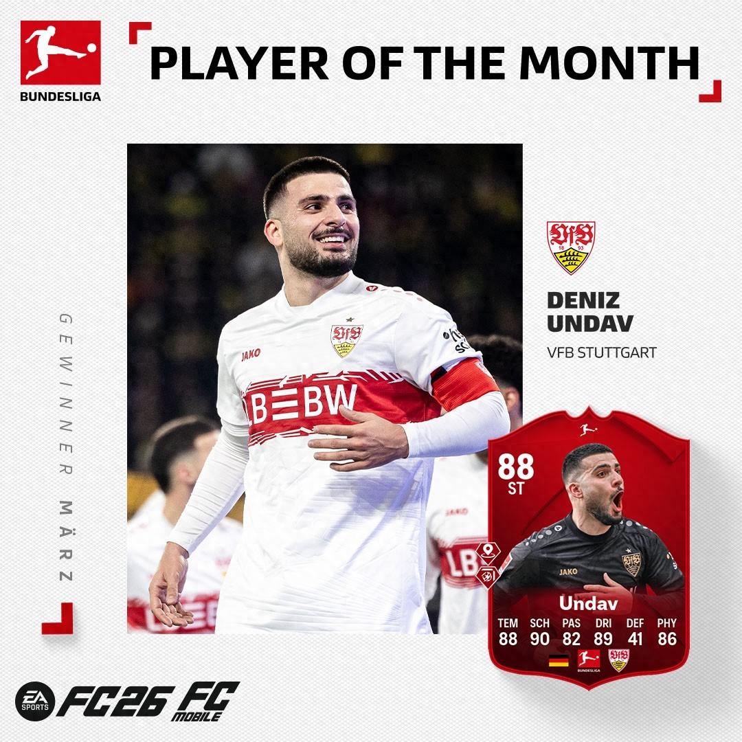 官方消息,斯圖加特前鋒昂達夫當選德甲3月最佳球員。