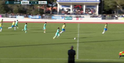 第29分鐘,阿圖爾-迪尼茲強勢突入禁區破門,U16國少0-1巴西U16