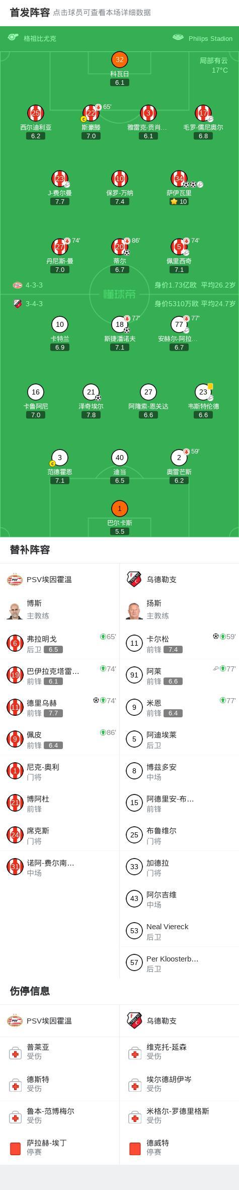 下半場補時第4分鐘,PSV埃因霍溫球員J-費爾曼助攻德里烏赫打入一球。