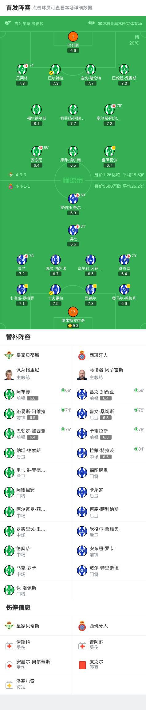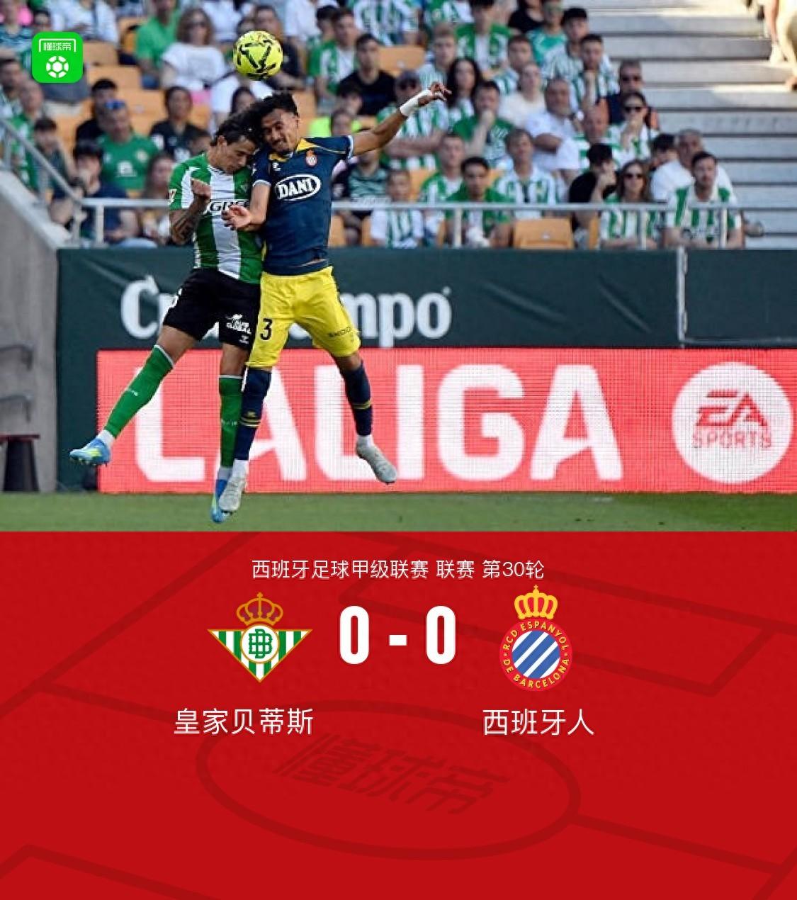 北京時間4月5日西班牙足球甲級聯賽第30輪,皇家貝蒂斯主場對陣西班牙人。下半場巴勃羅-加西亞禁區打門擊中橫樑,雙方未能把握機會取得進球。最終比分皇家貝蒂斯 0-0 西班牙人。