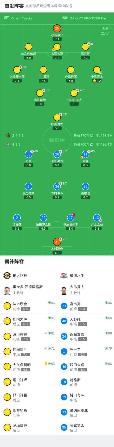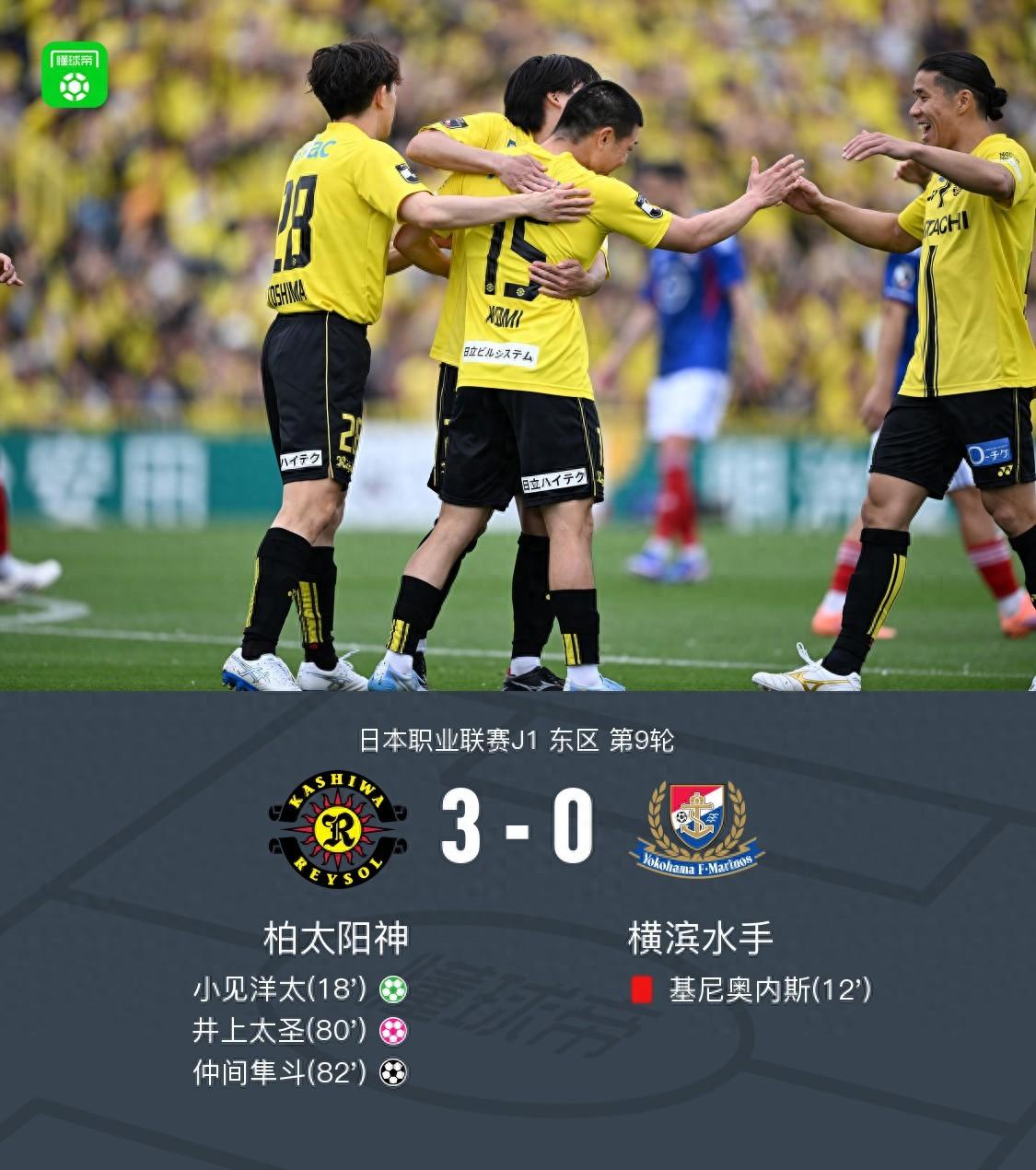 北京時間4月5日日本職業聯賽J1東區第9輪,柏太陽神主場對陣橫濱水手。基尼奧內斯染紅,小見洋太點射破門,仲間隼鬥建功,井上太聖自擺烏龍。最終比分柏太陽神3-0橫濱水手。