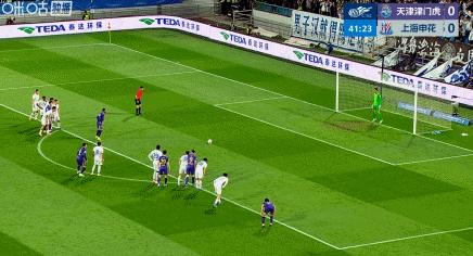 比賽進行到第42分鐘,蓋伊手球送點,謝蒂內點射建功幫助天津津門虎取得領先。