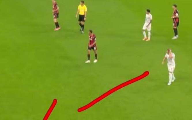 首先,如果我們先暫停在這裏。顯然,作爲一名前鋒,你仍然需要防守,你仍然需要爲球隊付出。我的部分職責是提供幫助,尤其是在球隊被反擊的時候。所以你可以看到,我在這裏,在禁區邊緣。當這個球被解圍出來時……