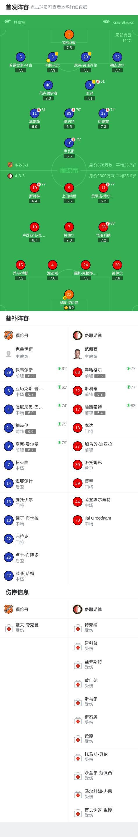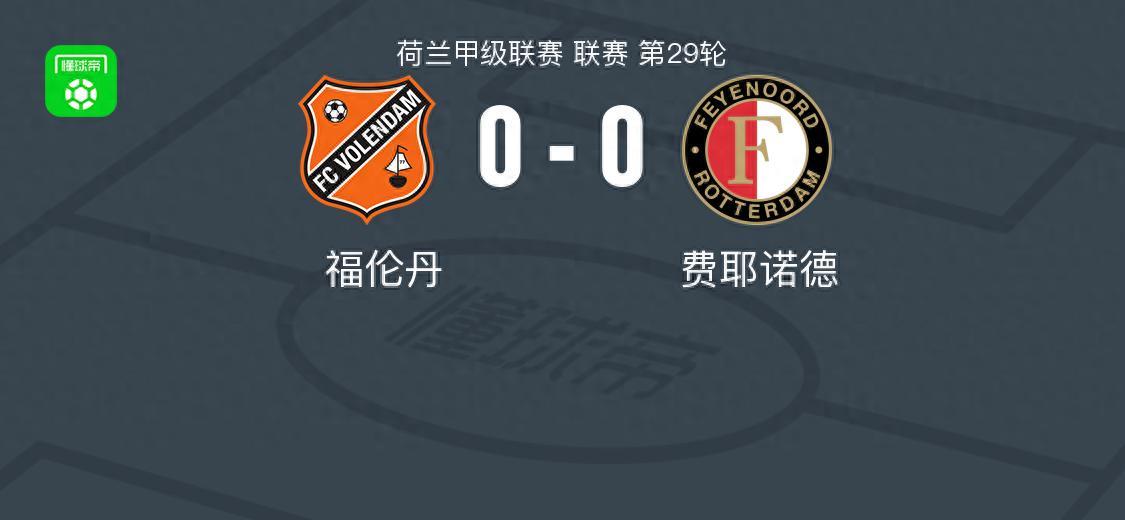 北京時間4月5日荷蘭甲級聯賽 聯賽 第29輪,福倫丹主場對陣費耶諾德。最終比分福倫丹 0