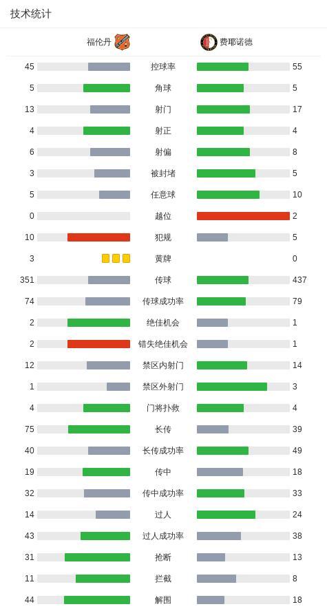 福倫丹0-0費耶諾德,雙方握手言和