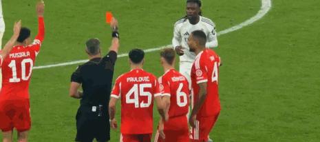 歐冠1/4決賽次回合,皇馬客場對陣拜仁,卡馬文加在第87分鐘累計兩張黃牌被罰下。
