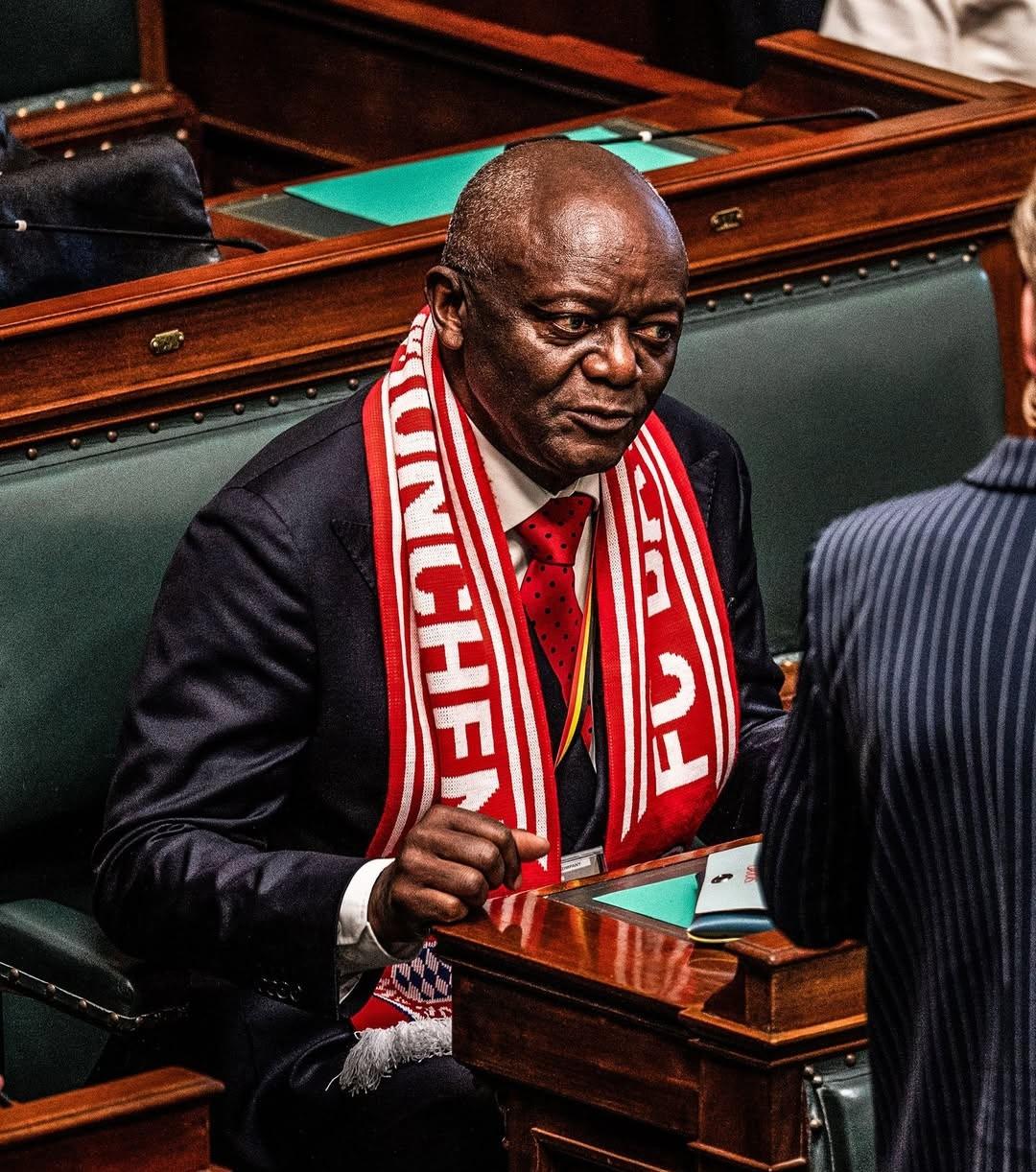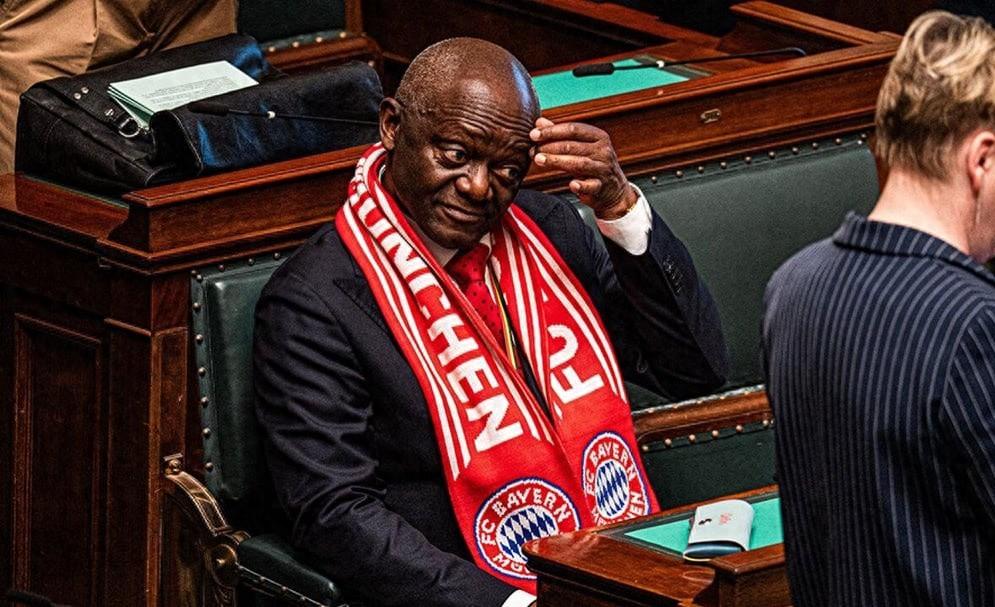 拜仁淘汰皇馬後,孔帕尼父親圍着拜仁圍巾參加比利時議會活動