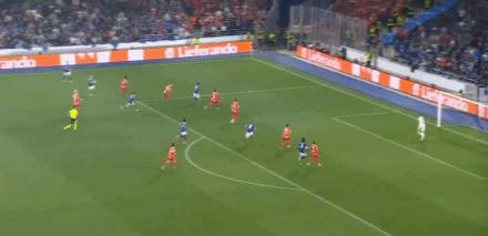 第35分鐘,恩西索傳中,瓦塔拉搶點頭槌破門,斯特拉斯堡2-0