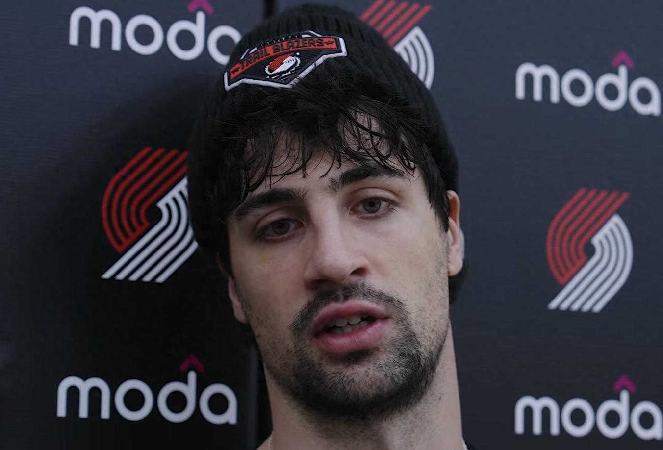 北京時間4月16日,在NBA季後賽首輪對陣馬刺隊賽前,開拓者球員阿夫迪亞接受了媒體的採訪。