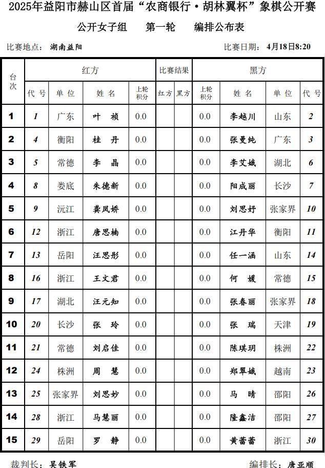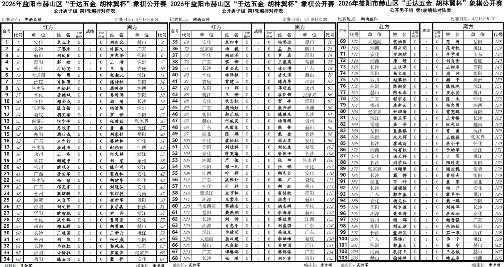 山鄉新鉅變,多彩新赫山,本番2026年益陽市赫山區第二屆“壬達五金 ·胡林翼杯”象棋公開賽,由湖南省全民健身中心指導,益陽市赫山區文化旅遊廣電體育局主辦,益陽市赫山區全民健身服務中心承辦。