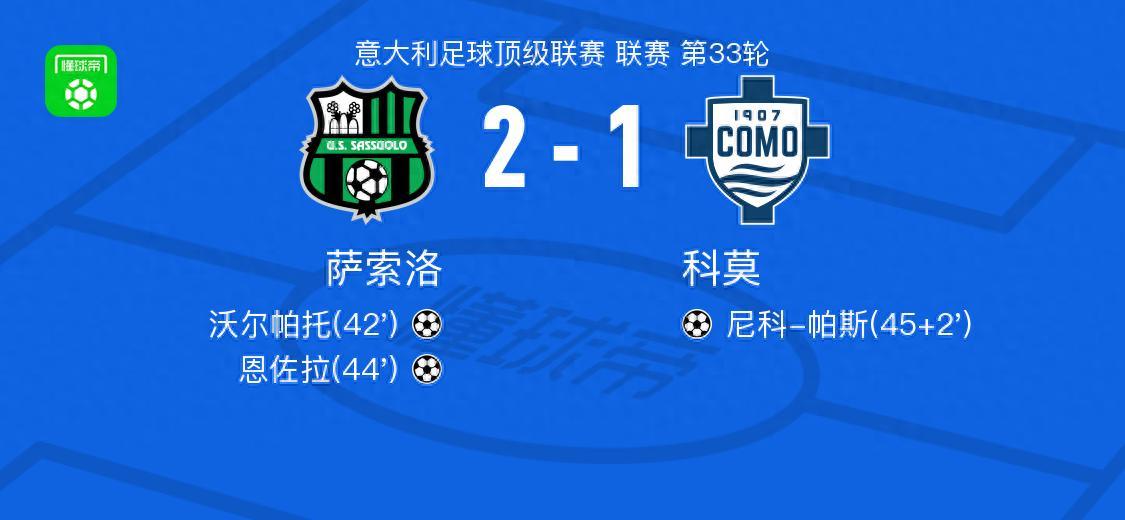 北京時間4月18日意大利足球頂級聯賽 聯賽 第33輪,薩索洛主場對陣科莫。薩索洛沃爾帕託破門,恩佐拉破門。科莫尼科-帕斯破門。最終比分薩索洛 2-1 科莫。