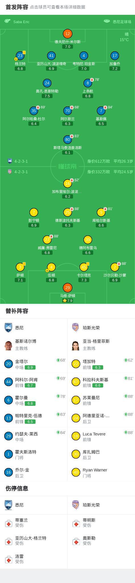 悉尼0-0珀斯光榮,斯塔馬泰洛普洛斯失良機,馬修-薩頓屢救險