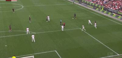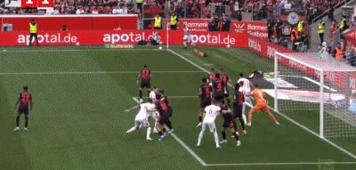 第12分鐘,塔普索巴傳中,希克頭球破門,勒沃庫森1-0領先奧格斯堡